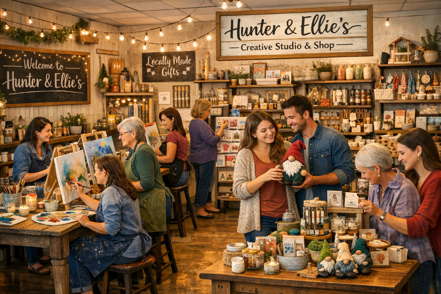 Hunter & Ellie’s is a creative studio located in the heart of downtown Milan, designed for people who love to make, create, and explore their artistic side. Our space was created to be welcoming, relaxed, and inspiring — a place where creativity and community come together.